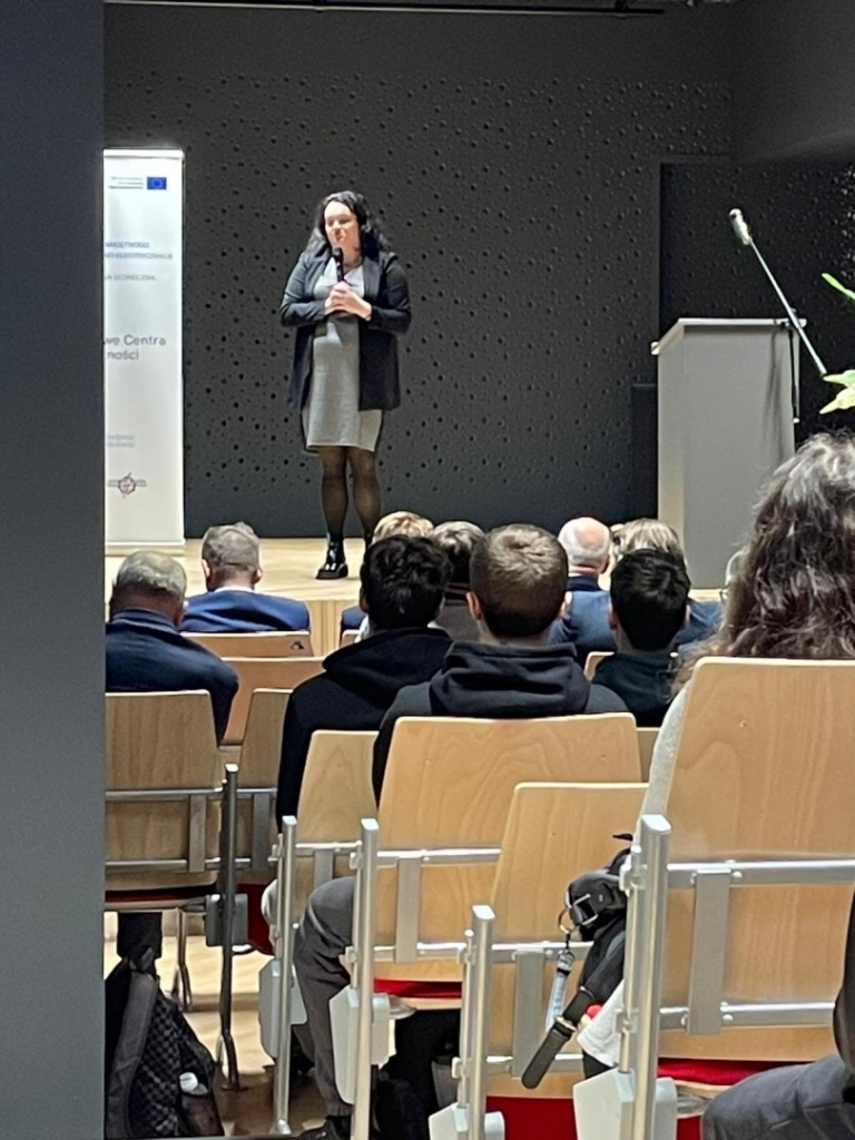 Konferencję otworzyła Dyrektor ZSM-E mgr Bożena Piątek, podkreślając znaczenie współpracy międzysektorowej i roli edukacji w procesie transformacji energetycznej.